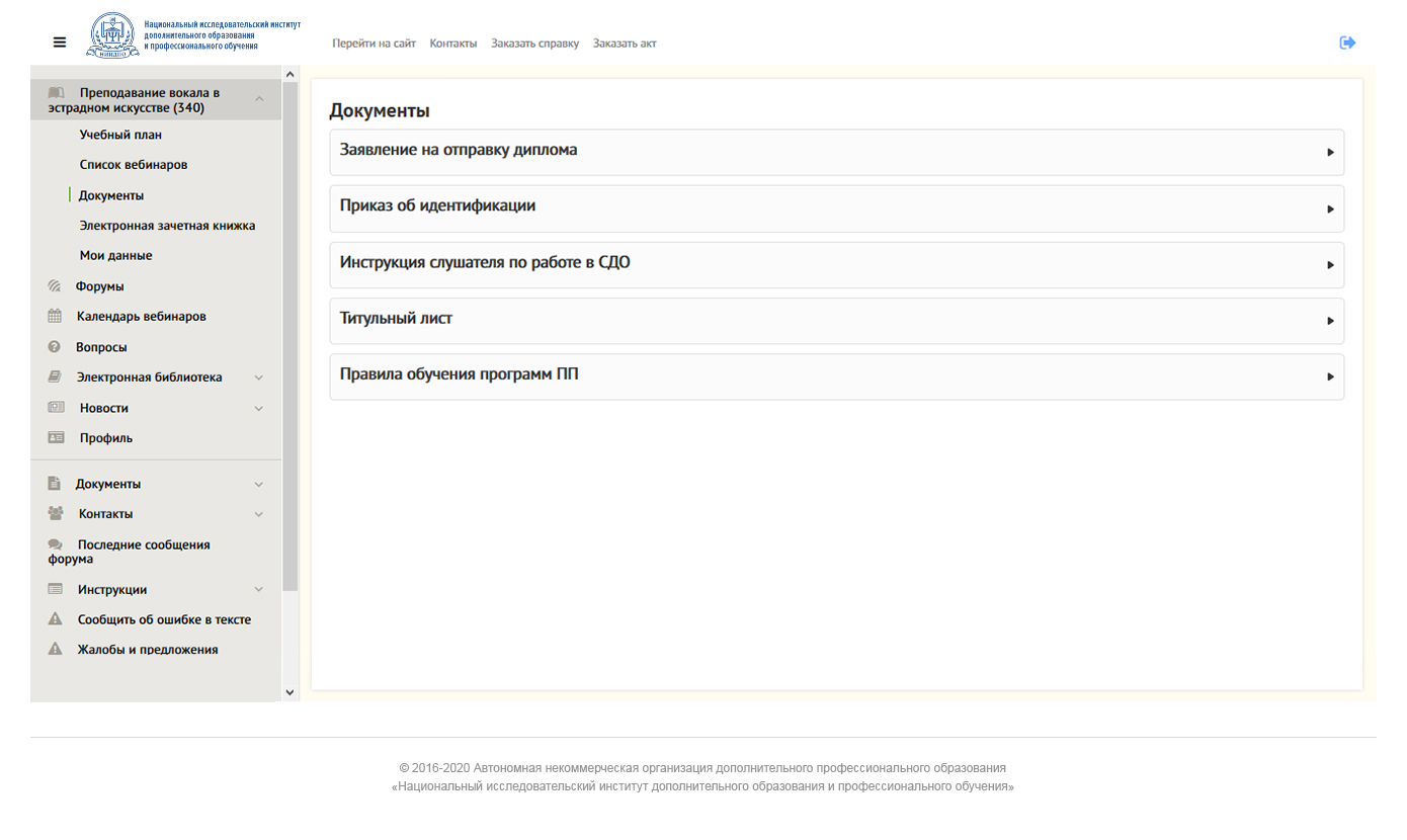 В разделе «Документы» вы найдете правила обучения, инструкцию обучающегося, информацию об отправке документа о квалификации по почте, приказ «Об установлении порядка идентификации обучающихся».