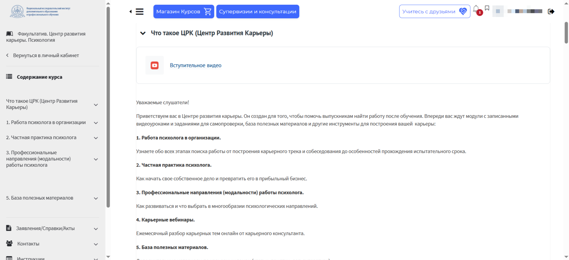 *Уточняйте наличие доступа к Центру Развития Карьеры на вашем курсе у специалиста отдела по организации приема.