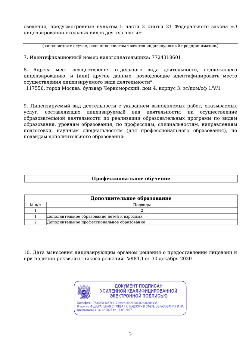 Дата предоставления лицензии: 30 декабря 2020 г.