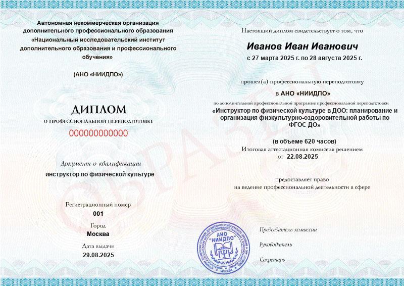 Студент, желающий поступить в АНО «НИИДПО», должен предоставить справку из образовательной организации. Независимо от срока окончания обучения по программе дополнительного образования, диплом о профпереподготовке выдаётся только после предъявления документа о получении среднего профессионального или высшего образования.