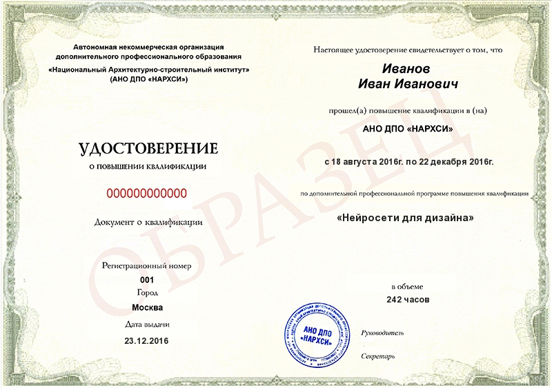 Да, документы оформляются на бланках с защитой от подделок, заполняются на русском языке, в них ставится печать АНО «НИИДПО».
