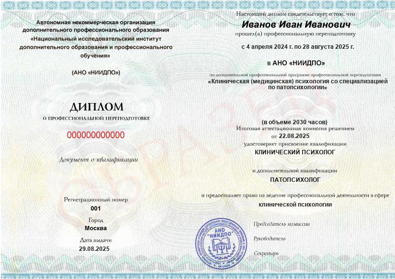 - 2 квалификации: Клинический психолог + Патопсихолог
