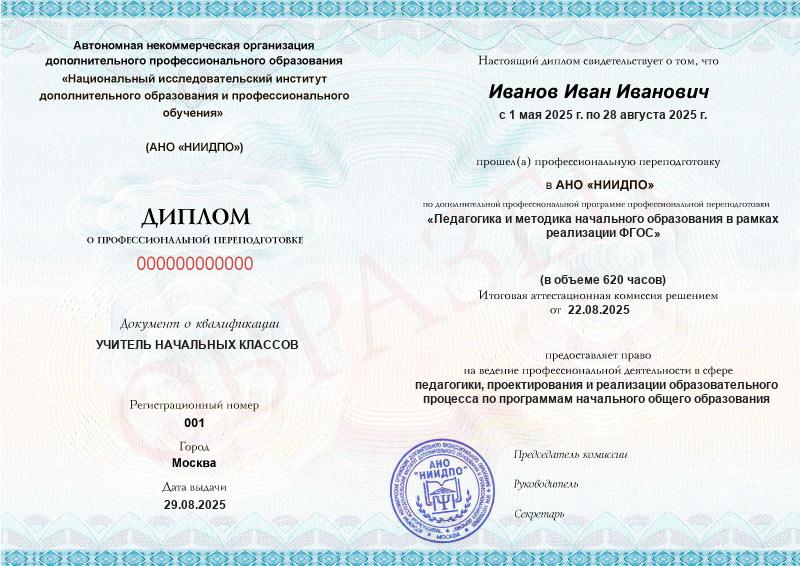Студент, желающий поступить в АНО «НИИДПО», должен предоставить справку из образовательной организации. Независимо от срока окончания обучения по программе дополнительного образования, диплом о профпереподготовке выдаётся только после предъявления документа о получении среднего профессионального или высшего образования.