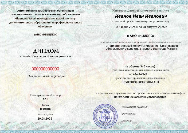 Психологическое консультирование. Организация эффективного консультативного взаимодействия (340ч)