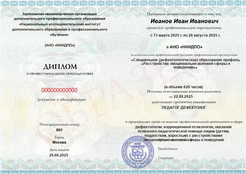 Специальное (дефектологическое) образование профиль «Расстройства эмоционально-волевой сферы и поведения» (620ч)