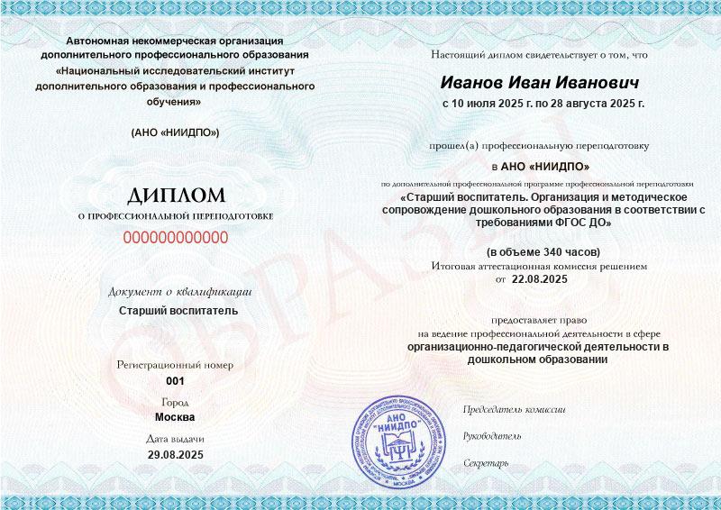 Студент, желающий поступить в АНО «НИИДПО», должен предоставить справку из образовательной организации. Независимо от срока окончания обучения по программе дополнительного образования, диплом о профпереподготовке выдаётся только после предъявления документа о получении среднего профессионального или высшего образования.