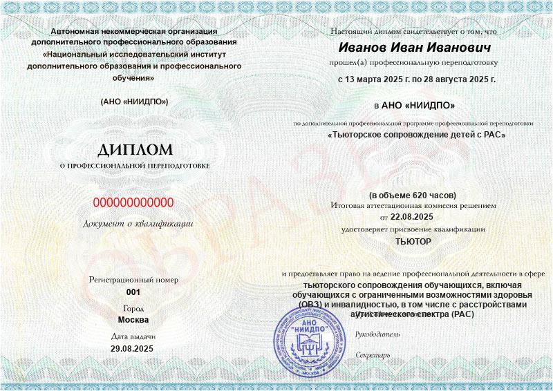 - Квалификация: Тьютор