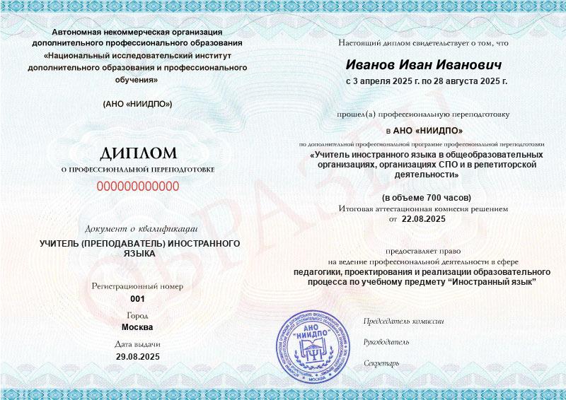 Учитель иностранного языка в общеобразовательных организациях, организациях СПО и в репетиторской деятельности (700ч)