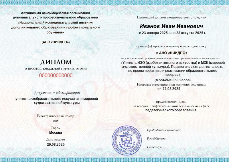 Учитель ИЗО (изобразительного искусства) и МХК (мировой художественной культуры). Педагогическая деятельность по проектированию и реализации образовательного процесса в соответствии с ФГОС (850ч)