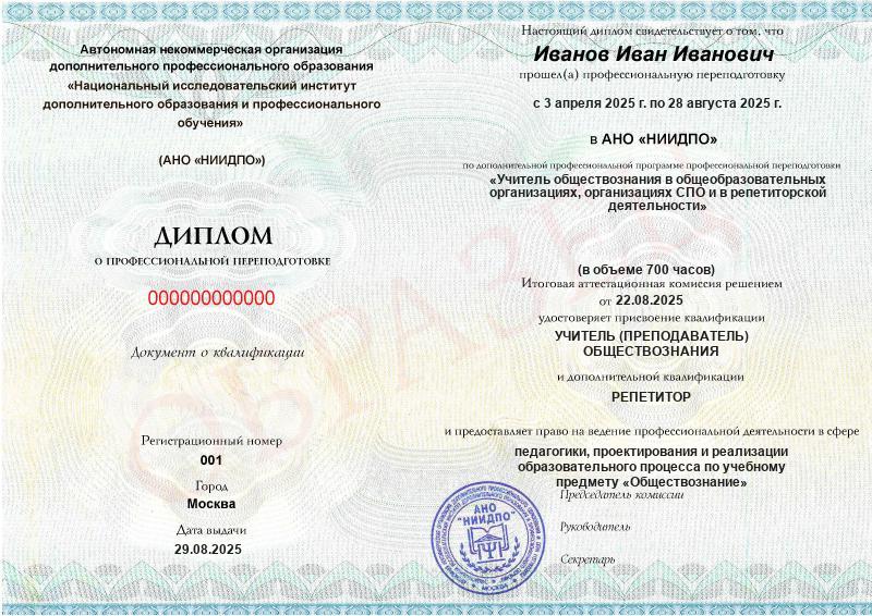 Учитель обществознания в общеобразовательных организациях, организациях СПО и в репетиторской деятельности (700ч)