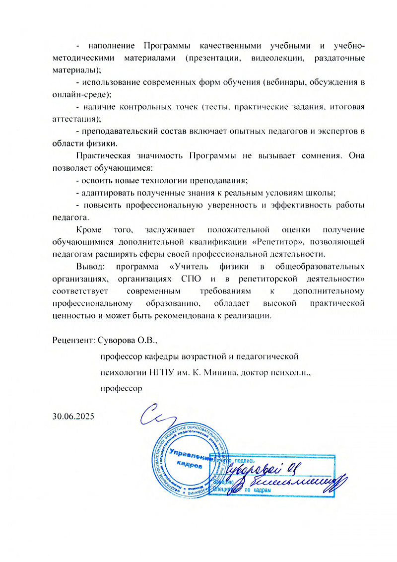 Читайте рецензию профессора кафедры возрастной и педагогической психологии НГПУ им. К. Минина», доктора психологических наук, профессора Суворовой О.В.