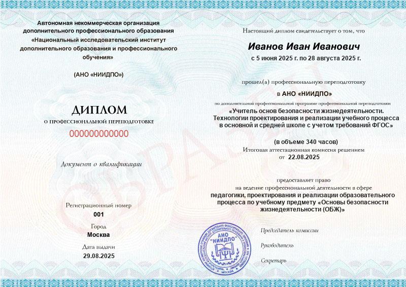 Студент, желающий поступить в АНО «НИИДПО», должен предоставить справку из образовательной организации. Независимо от срока окончания обучения по программе дополнительного образования, диплом о профпереподготовке выдаётся только после предъявления документа о получении среднего профессионального или высшего образования.